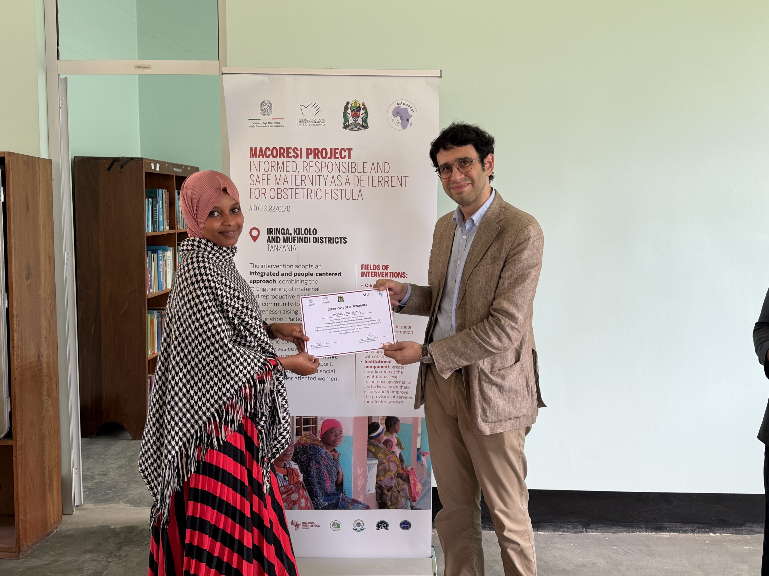 In fact, the training is part of the project MACORESI – “Conscious, responsible and safe motherhood as a deterrent to obstetric fistula,” funded by the Italian Cooperation and led by the University of Campania “Luigi Vanvitelli” in partnership with Doctors with Africa Cuamm, the Tosamaganga Regional Hospital, the Association of Obstetric Fistula Surgeons of Tanzania (AOSFT), the association Iringa Development of Youth Disabled and Children Care, and the Muhimbili University of Health and Allied Sciences (MUHAS).
