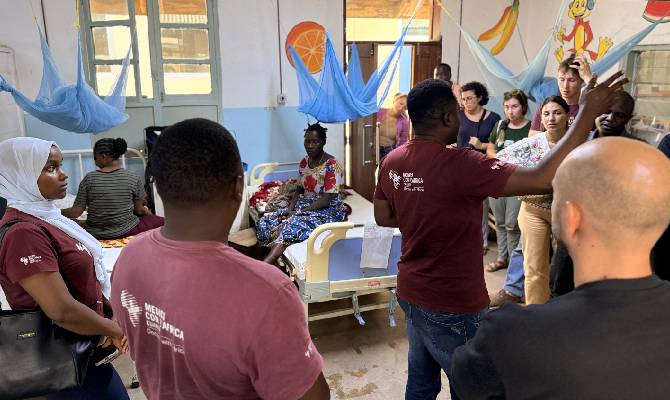 The first day focused on activities led by the Dodoma office, particularly those under the “Diverse Food System” project, which addresses issues related to malnutrition and early childhood development. Participants visited the Dodoma Regional Referral Hospital, where they observed CUAMM’s support to the malnutrition unit and explored the new Early Childhood Development Corner — a space designed to stimulate cognitive and neuromotor development in malnourished children.
